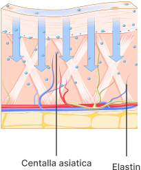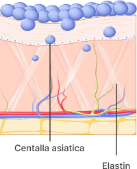 With LMW-HA, centella asiatica penetrates deep enough to reach the elastin fibers
