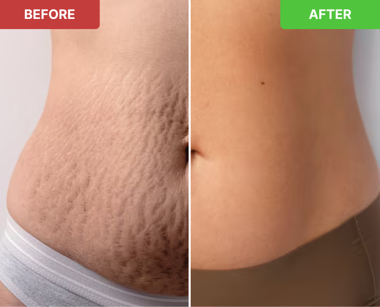 Using these two ingredients in combination is the secret to strengthening the elastin fibers or “rubber bands” in your skin, and minimizing the risk of getting stretch marks and loose skin.